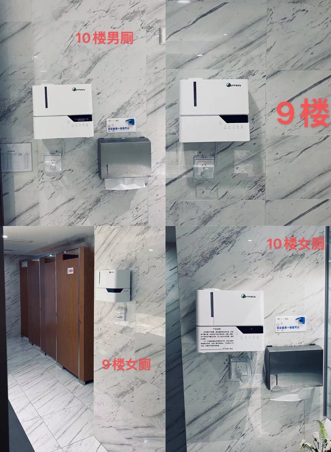 杭州黃龍萬科中心由于其寫字樓特性導(dǎo)致其洗手間整體式密封的,沒有窗戶和空氣流通的地方,洗手間使用人數(shù)也較多,造成其有異味特別是臭味,同時也有大量細(xì)菌問題,目前市面上的產(chǎn)品有掩蓋臭味的功效,或者物理吸附臭味,但沒有真正分解臭味和殺菌的產(chǎn)品,所以客戶選擇了我們幫助解決其洗手間臭味和細(xì)菌問題。